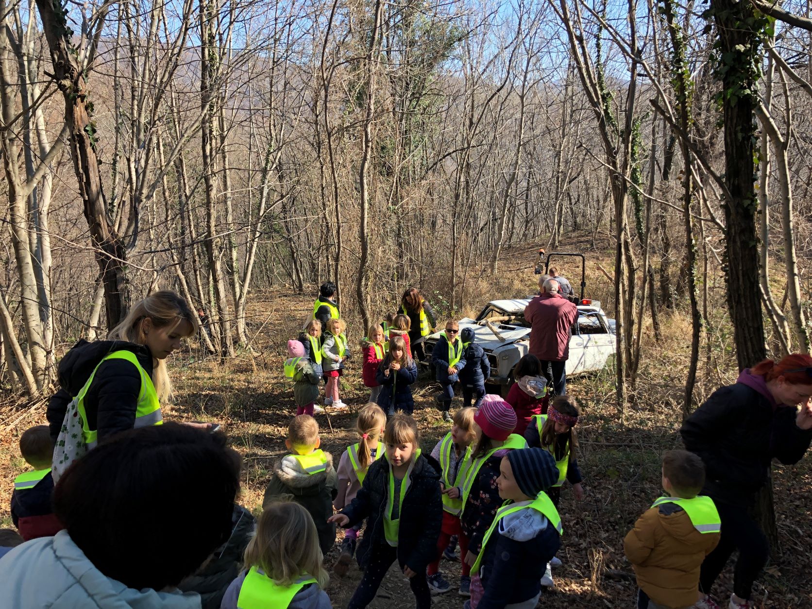 Sklenili smo, da mora zato zapuščeni avtomobil iz gozda. Otroci so se pogovarjali o tem problemu s svojimi starši, vzgojiteljice pa s starši, ki so aktivni znotraj lokalne skupnosti. Iskali smo možne rešitve, kako bi odstranili zapuščen avtomobil, ki je več desetletij tičal v gozdu v bližini vrtca in kazil naravo v tem predelu Kojskega.