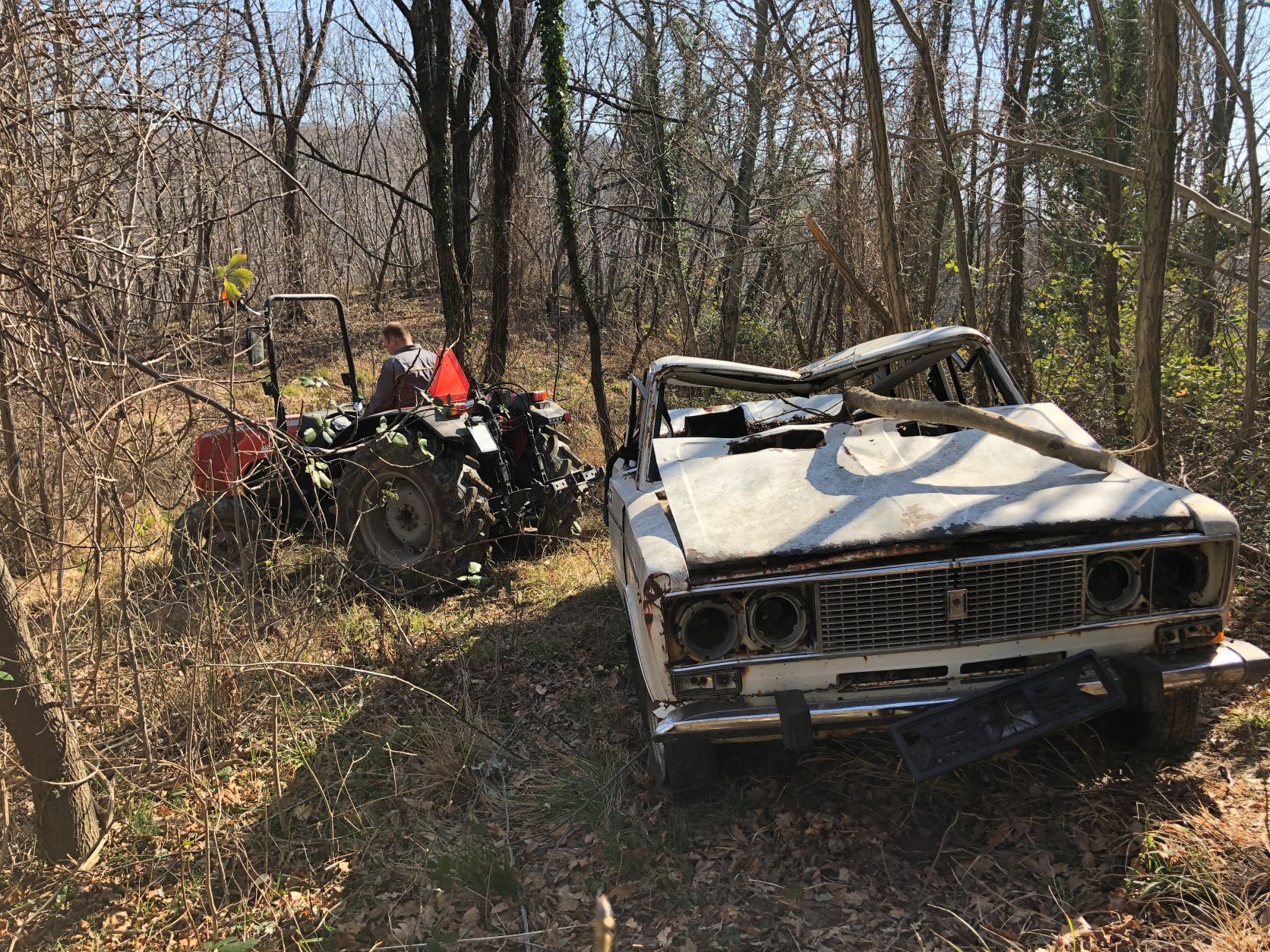 Ponosni smo, da je bila na našo pobudo, v četrtek, 10. marca izpeljana čistilna akcija. Predsednik vaške skupnosti Sebastjan Štekar je tako s traktorjem povlekel avtomobil iz gozda na pot, pri čemer so priskočili na pomoč še drugi vaščani. Pri vlečni službi Avtovleka Gorica so bili nad našo akcijo tako navdušena, da so odslužen avtomobil brezplačno odpeljali na uničenje na Jung d.o.o.