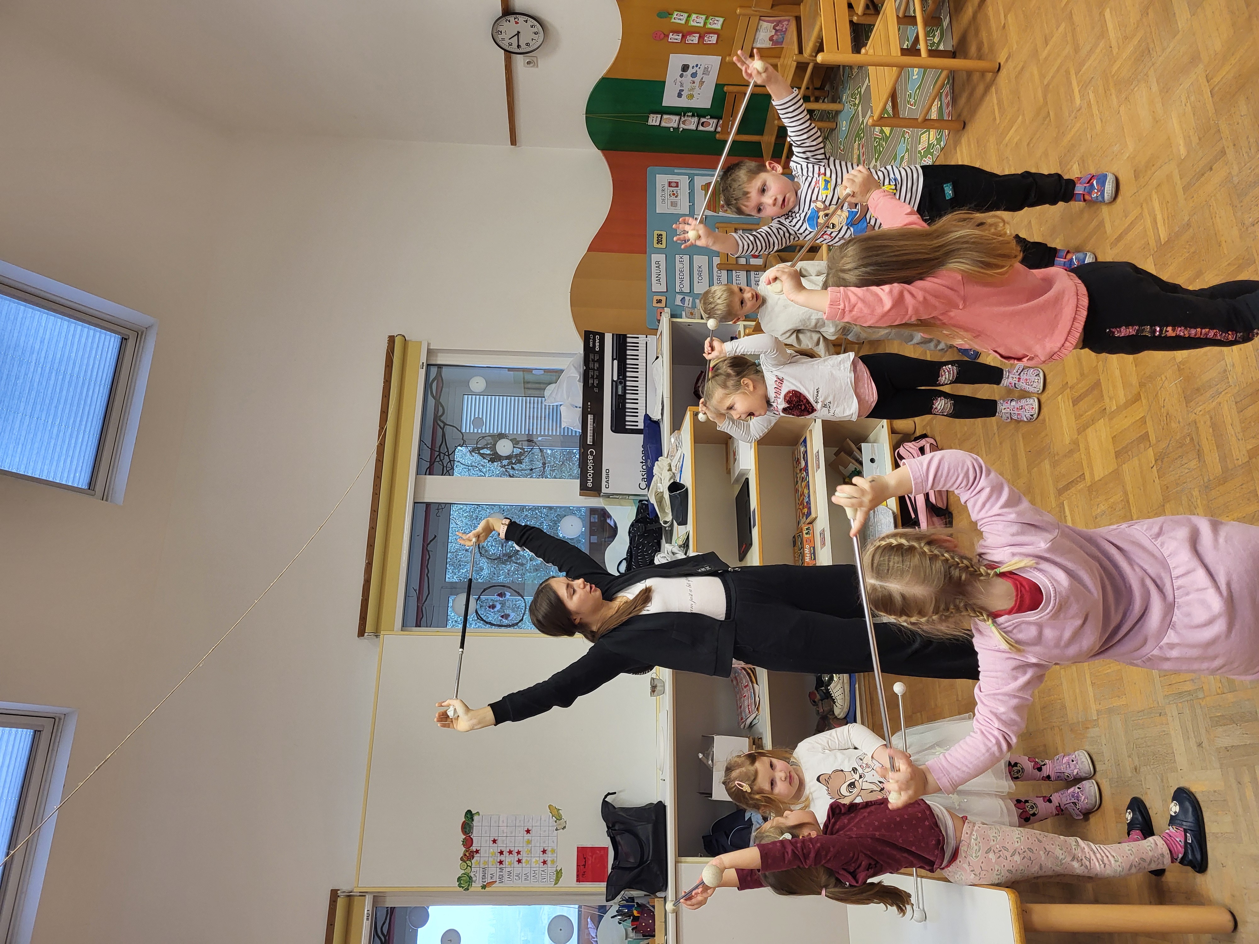 Otroci so bili skozi celotno dejavnost zelo motivirani, radovedni in aktivno vključeni. Z velikim veseljem so sodelovali pri gibanju in preizkušanju twirling palice.