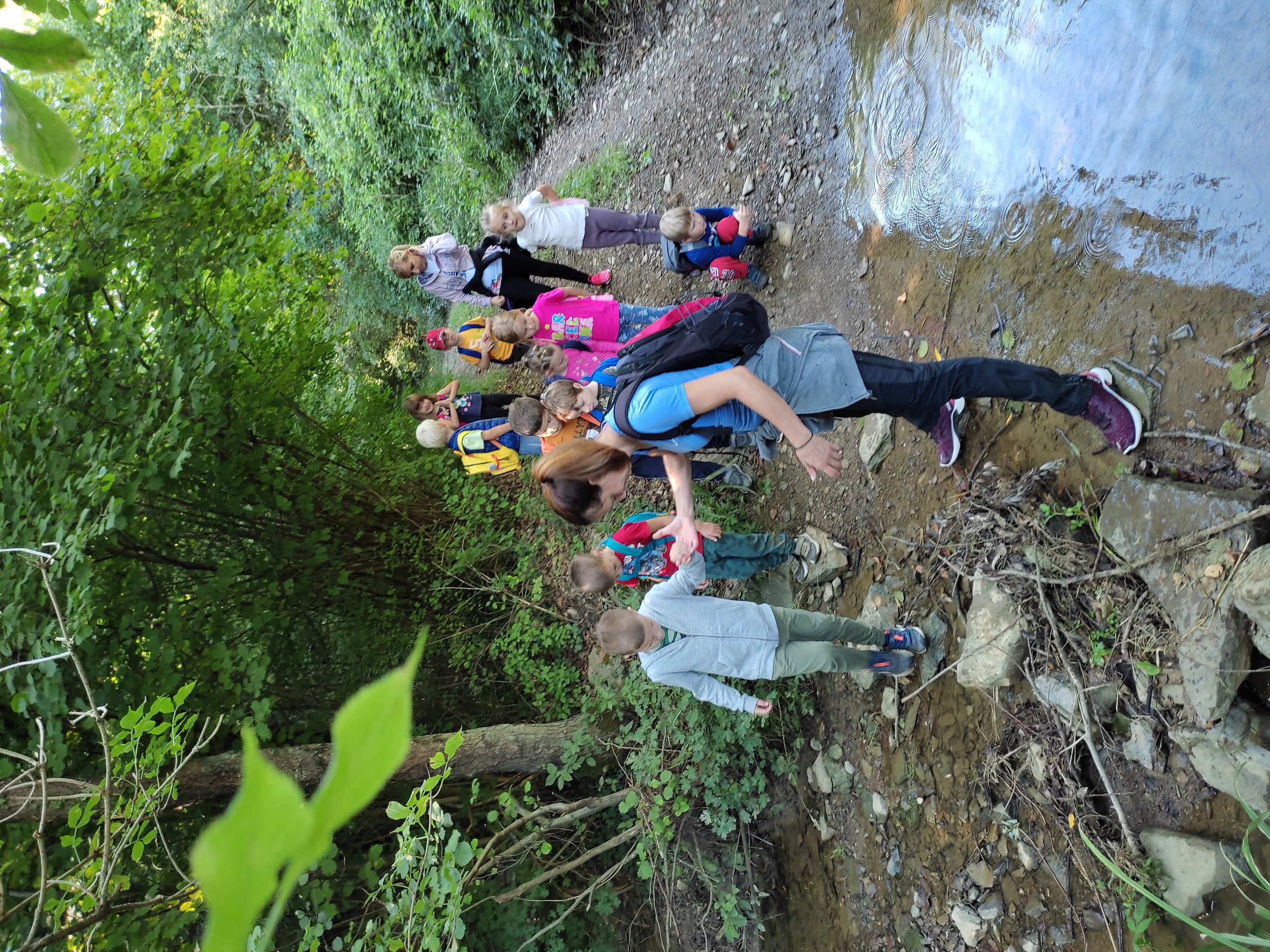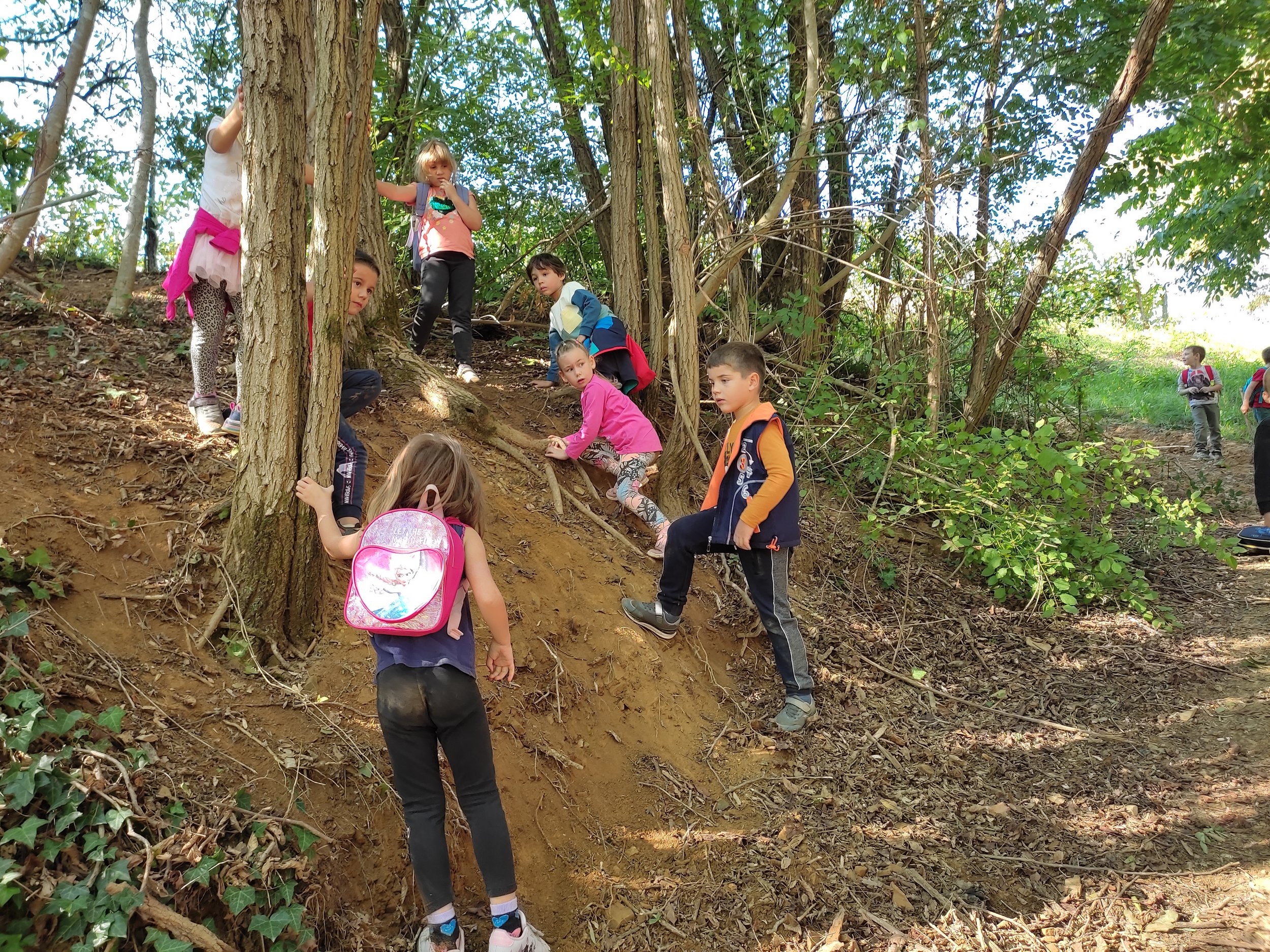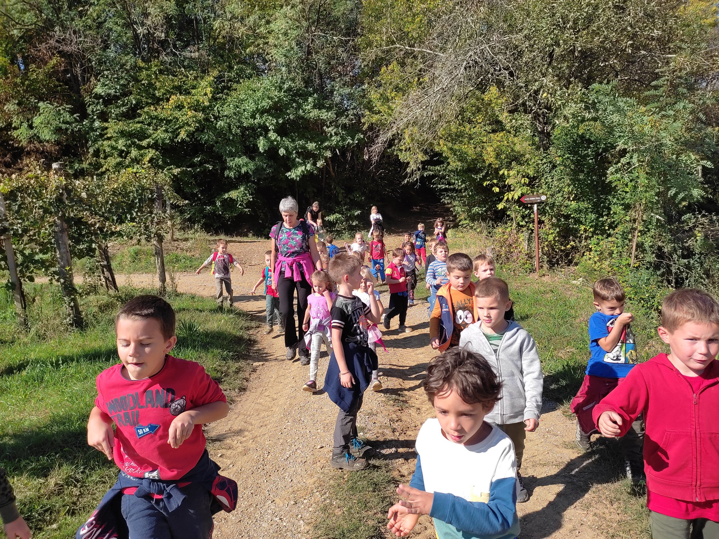 Prvi jesenski dan smo otroci iz skupin Zeleni palčki in Zakladi v Biljani praznovali tako, da smo se odpravili na daljši pohod. S seboj smo vzeli nahrbtnike, v katere smo spravili malico, ter pijačo. V lepem sončnem dnevu smo opazovali vinograde, trgače, ki so obirali zadnje grozde in prepoznavali vasi na bližnjih gričih. Najbolj zanimivo je bilo, ko smo na poti večkrat prečkali potok in se ob njem igrali.