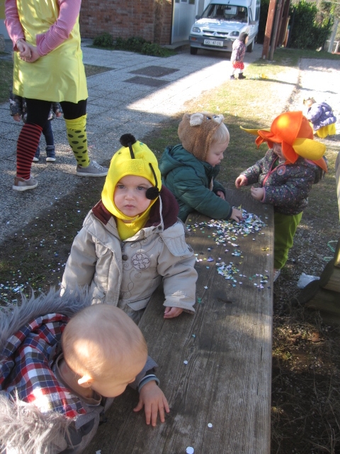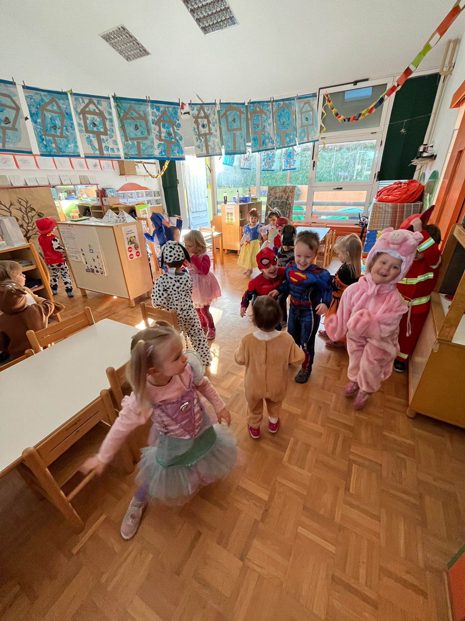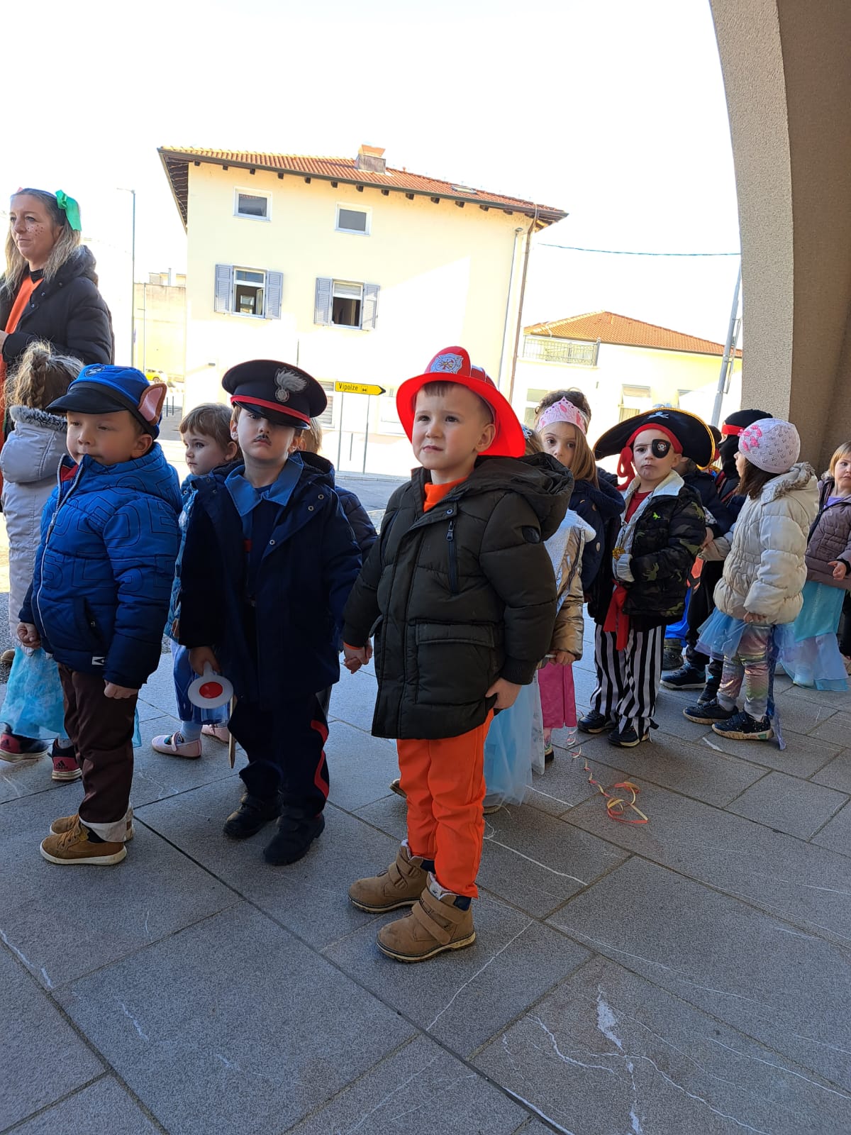 Zanimive maske so se ob spremljavi harmonike sprehodile do občine in marketa, kjer so jih razveselili z bomboni. Pustno rajanje pa se je s plesom in glasbo zaključilo na igrišču.