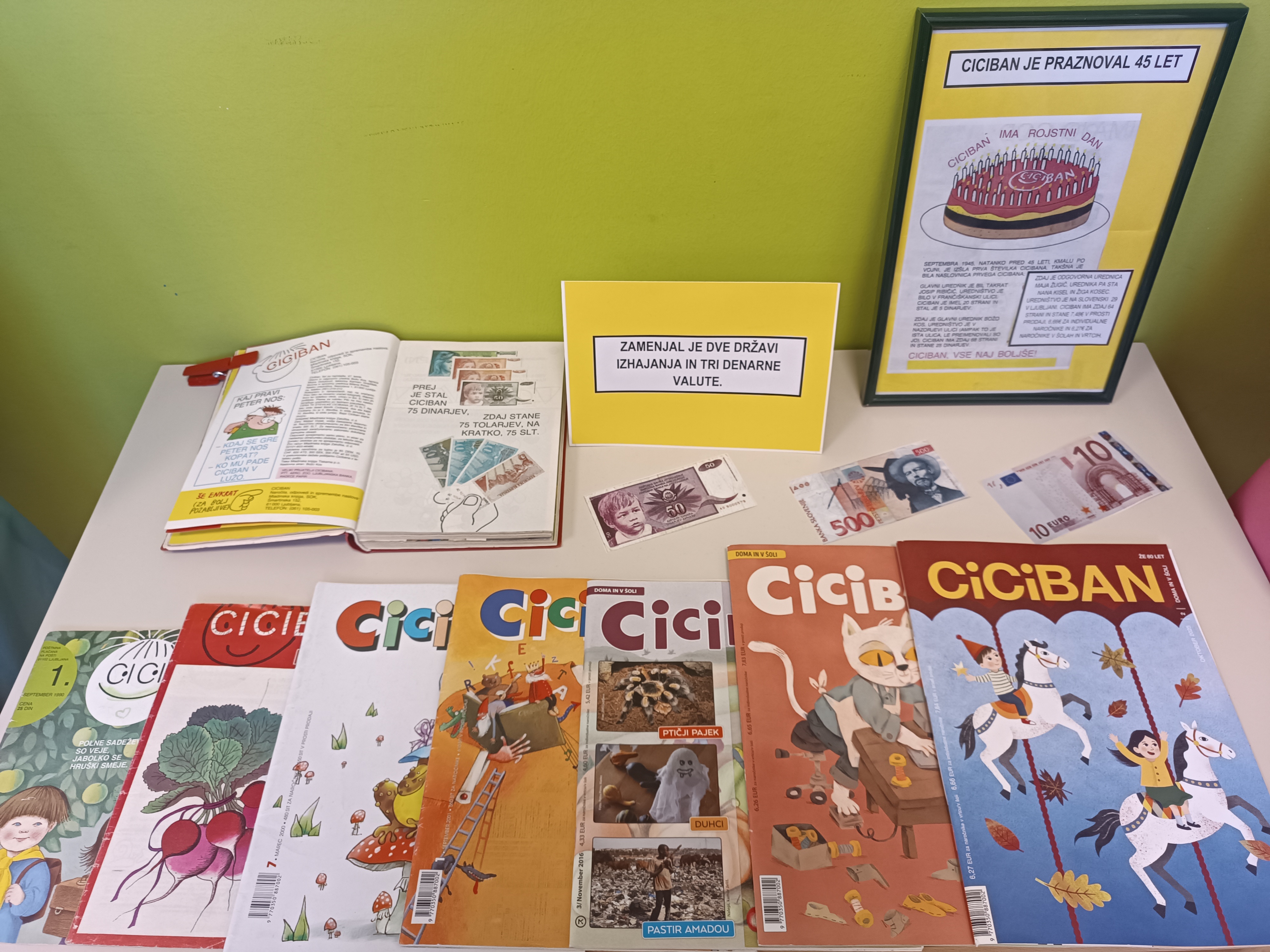 Revija, ki smo jo najverjetneje prebirali vsi, starši, vzgojitelji in še marsikatera nona in nono, letos praznuje celih 80 let. Ciciban se je »rodil« jeseni 1945 pri Založbi Mladinska knjiga. Ime je dobil po naslovu pesniške zbirke in literarnega lika Otona Župančiča in je v takratnem povojnem času igral vlogo berila za otroke. Od takrat pa do danes se je spreminjala njegova vsebina, format, uredniki in pisci, pa tudi državi izhajanja in denarne enote, v katerih ga plačujemo. Vse to in še več si lahko ogledate in preberete na razstavi, ki smo jo otvorili v tednu otroka. Lepo vabljeni in vse najboljše Ciciban!