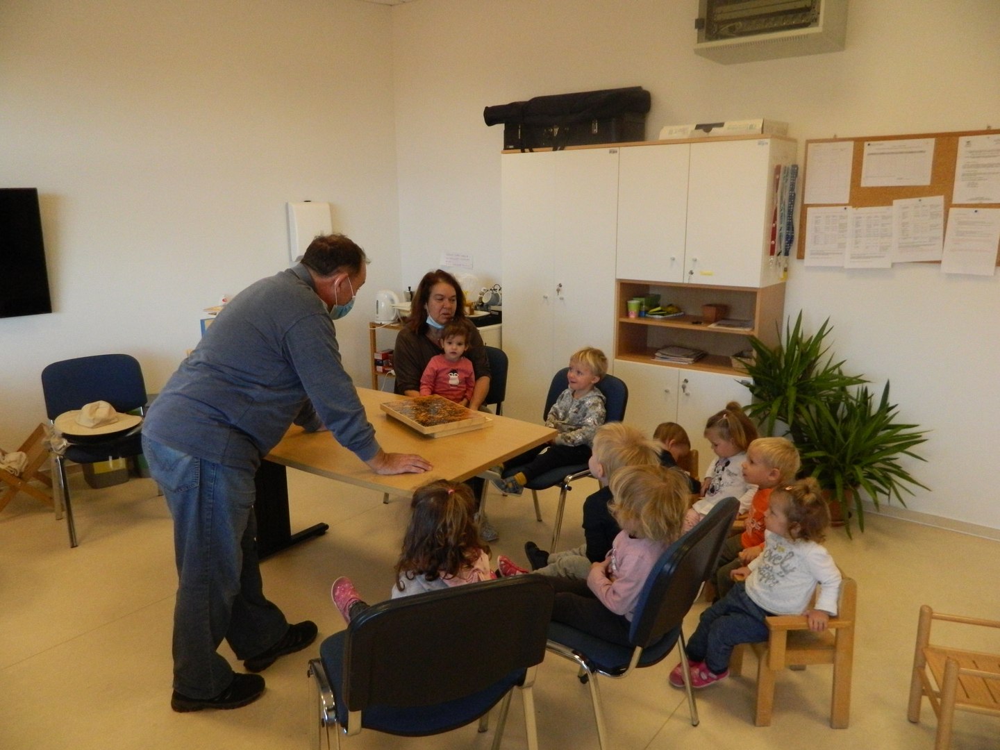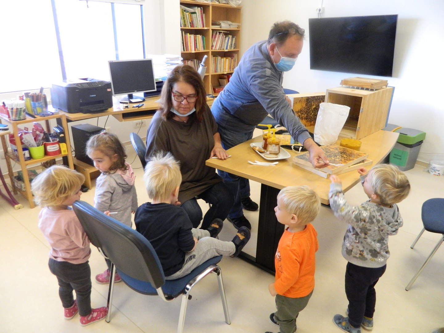 V sklopu teme Zdrava prehrana smo imeli v petek, 19. 11. 2021, slovenski tradicionalni zajtrk. Jedli smo maslo in med, jabolka ter pili mleko. Obiskal nas je tudi čebelar Danilo Štekar.